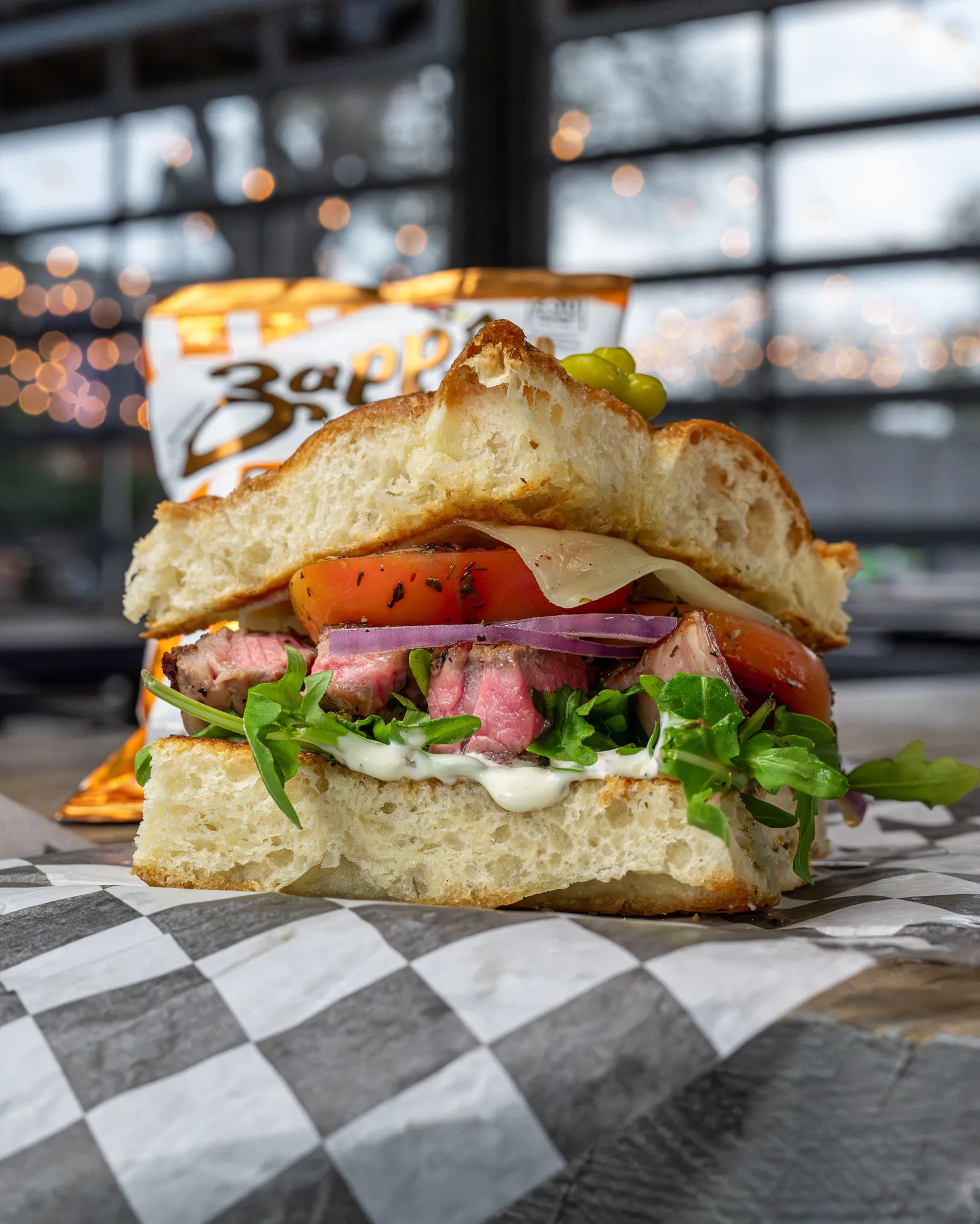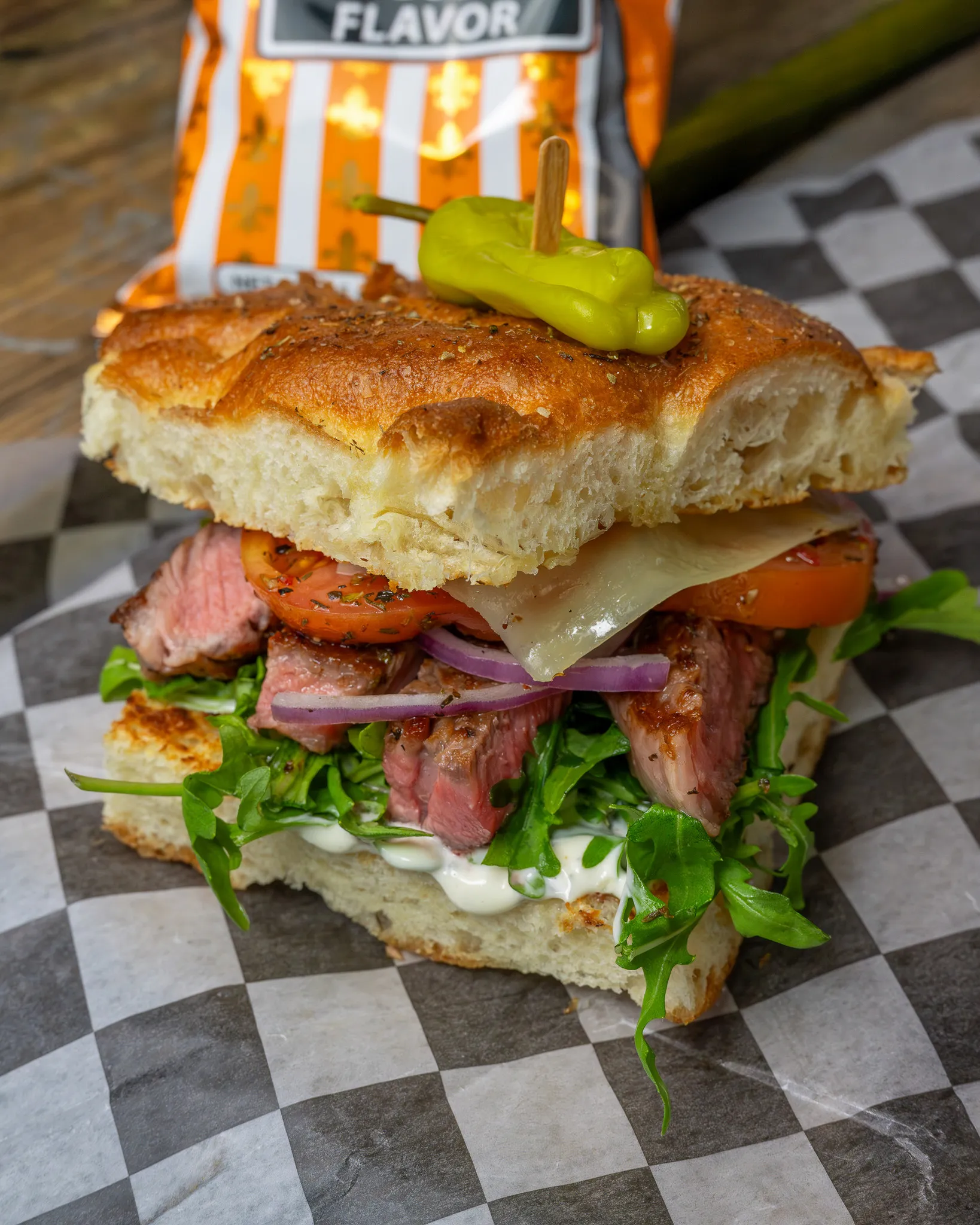 Friday only! Ribeye sandwich with herb cream sauce, baby greens, marinated tomato and Swiss on toasted focaccia. NOT AVAILABLE TO GO!